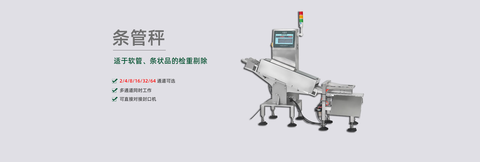 擁有各種剔除方案的專利,包括多列稱重結構的剔除裝置,可杜絕不合格品誤通過,準確剔除各種高速、超薄、片狀、易碎,軟包、空包等物品,包括多列高速產品。